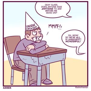 These contradictions are not accidental, nor do they result from ordinary hypocrisy: they are the deliberate exercises in doublethink. For it is only by reconciling contradictions that power can be retained indefinitely. … If equality is to be forever averted—if the High … are to keep their places permanently—then the prevailing mental condition must be controlled insanity.” vi